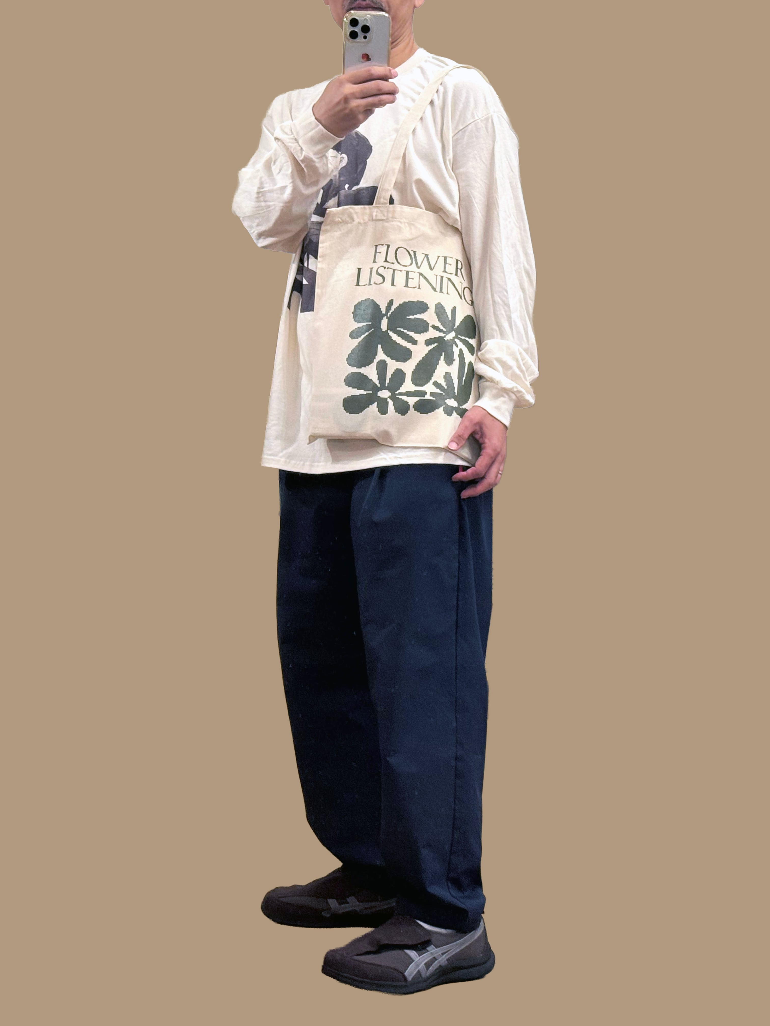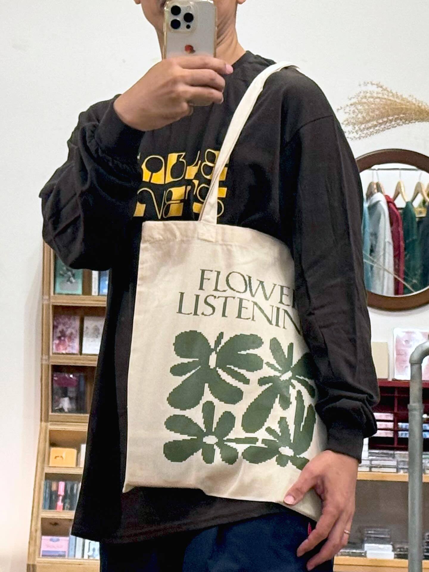 当店もクルーとして名古屋の花屋TUMBLEWEEDで不定期開催する「FLOWER LISTENING」のトートバッグです。
